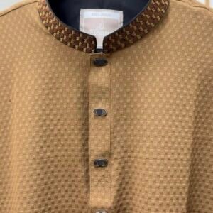 premium Chinese Crab cotton fabric in a biscuit golden color with metal snap buttons.